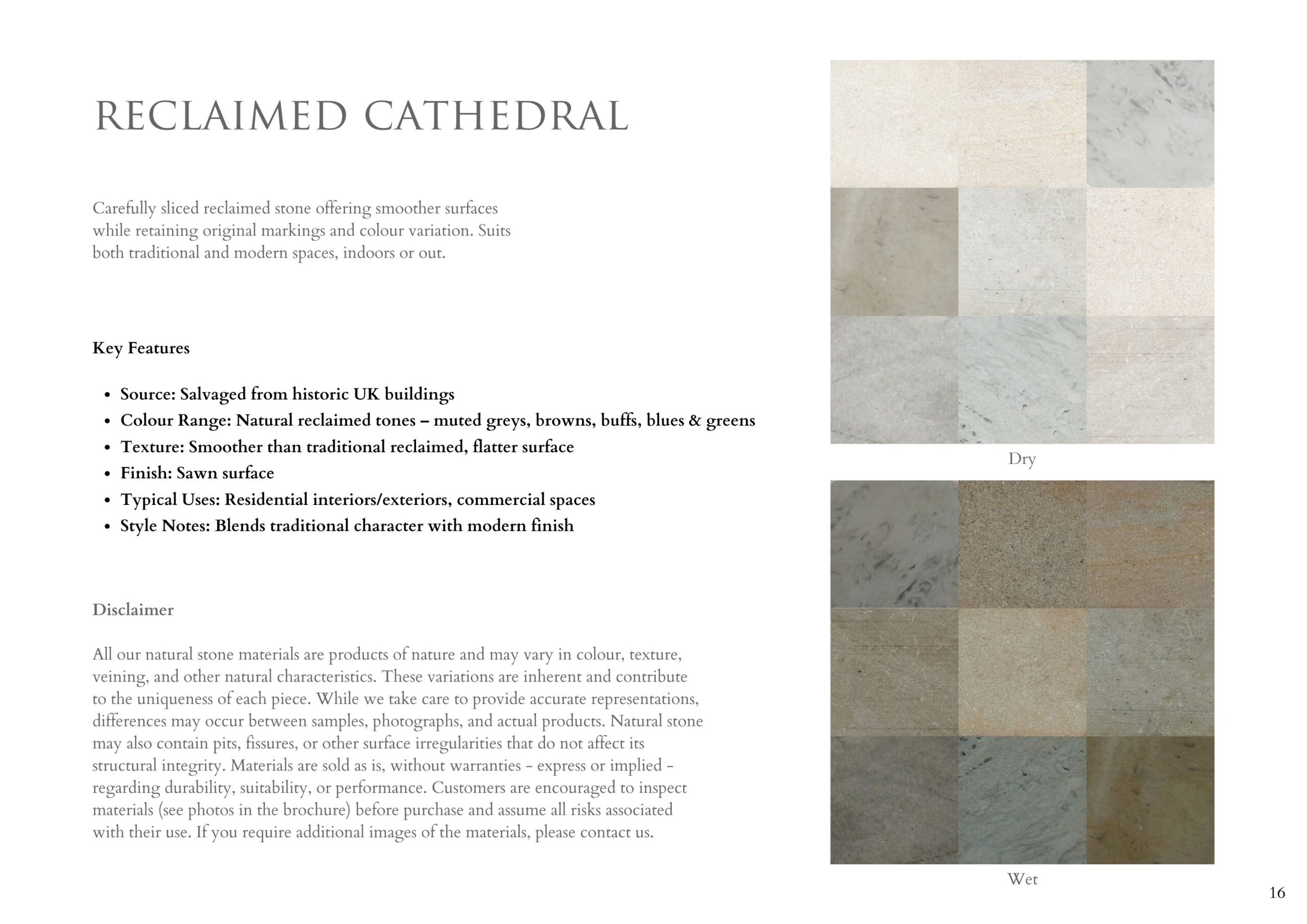 Genuine reclaimed Yorkstone interior paving brings historic character and durability into any interior, using flags carefully selected from prestigious UK sites and landmarks. Reduced thickness makes these reclaimed Yorkstone slabs easier to handle and install, creating a practical flooring solution that retains the rich patina and variation developed over decades of use.